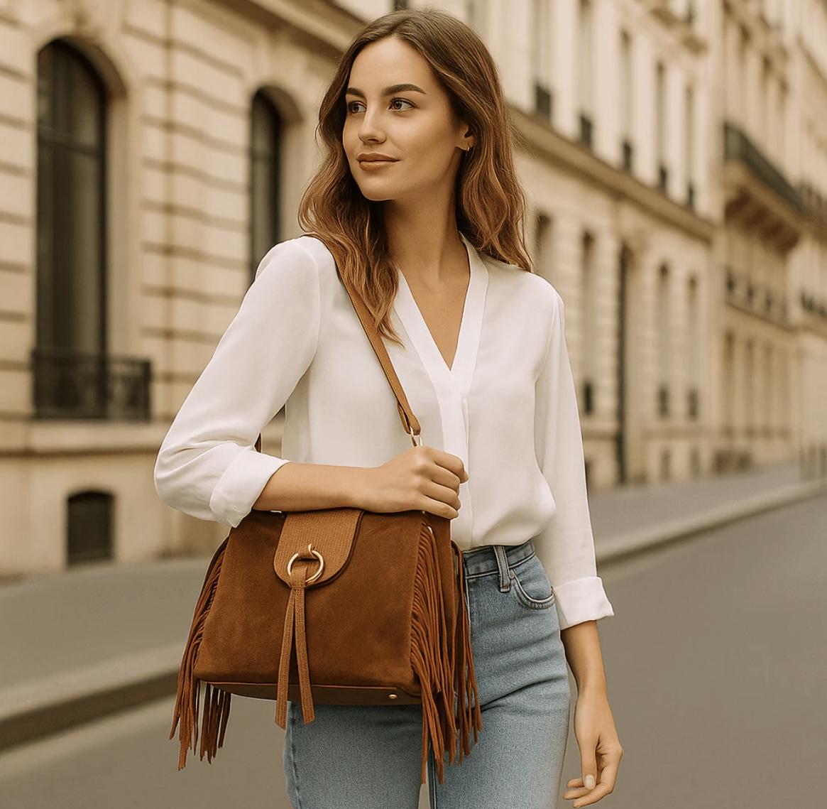 Bolso piel detalle flecos
