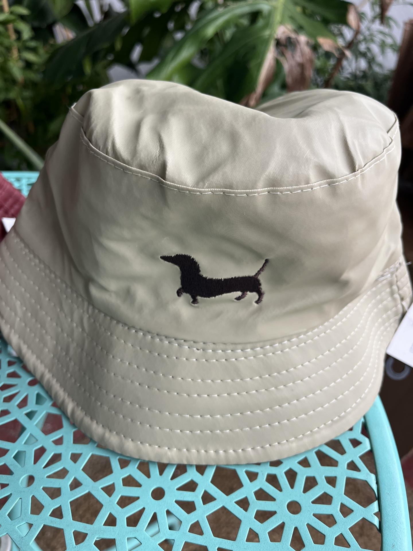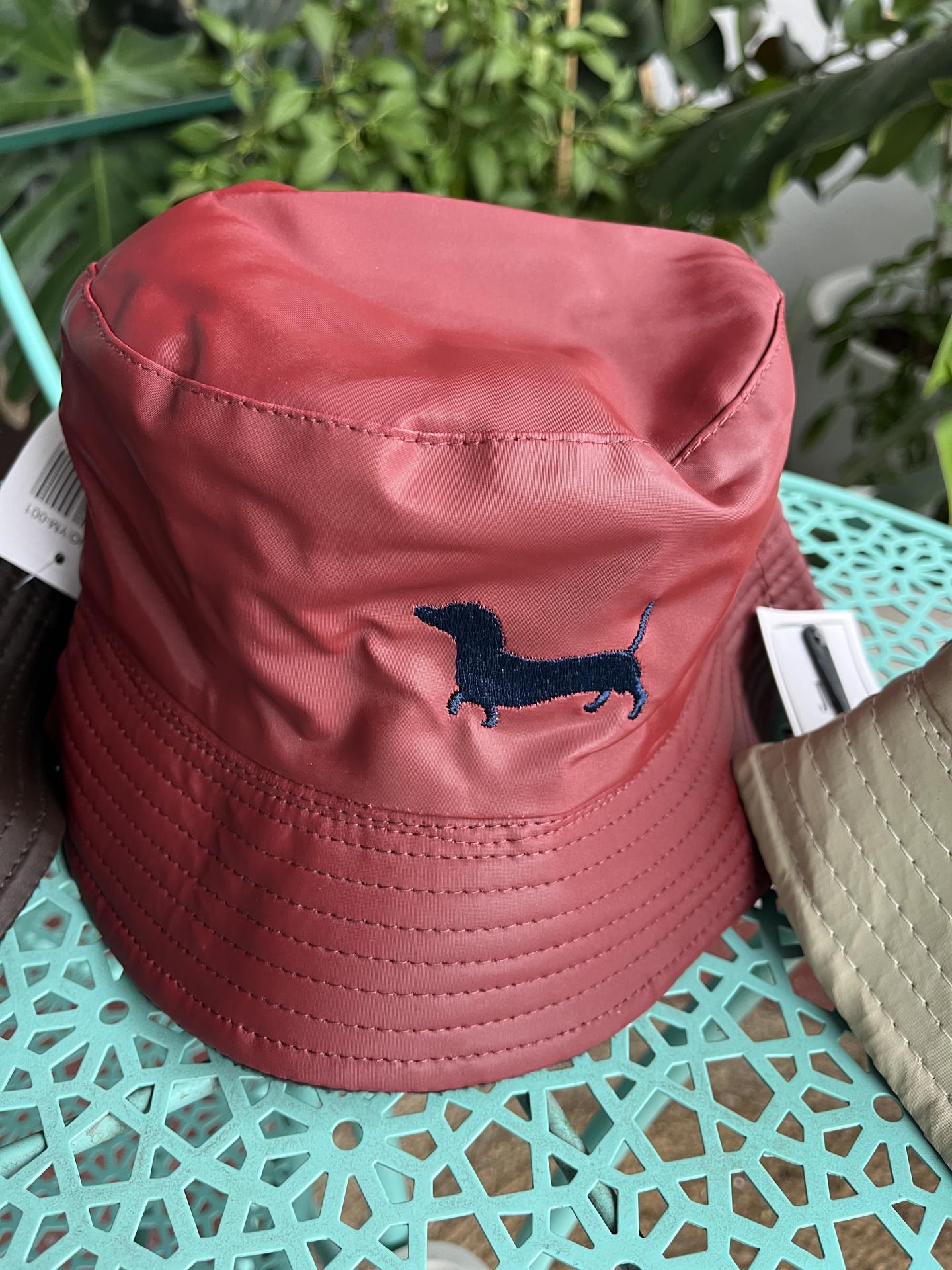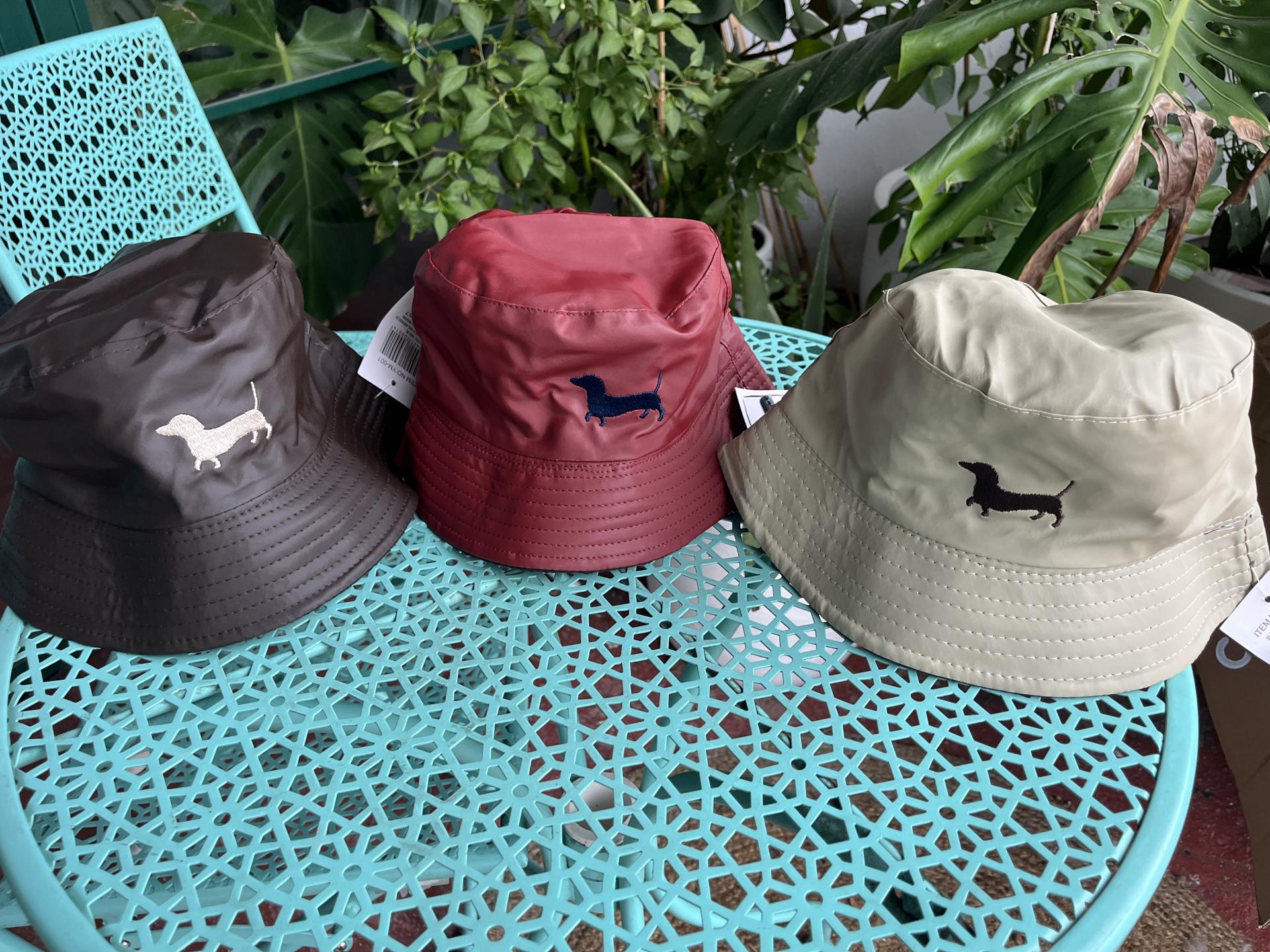 Gorros unisex impermeables de lluvia, forrados por dentro con borreguito, y bordados con la figura del Teckel.