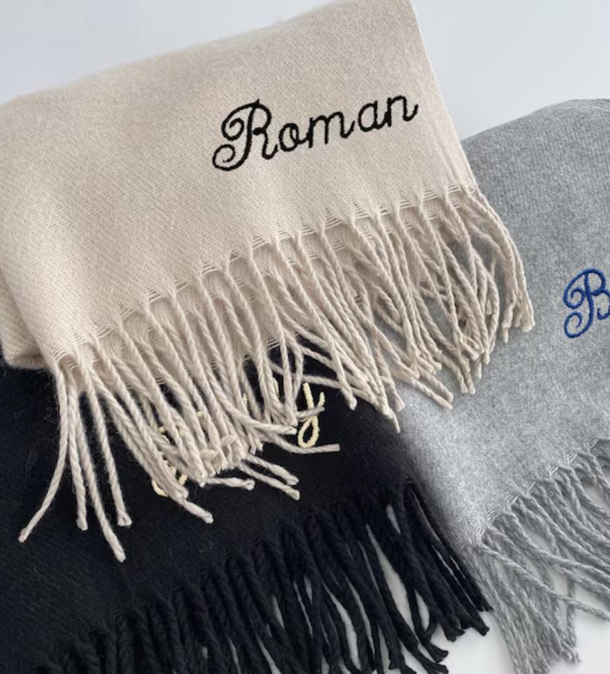 Lo que hace especial a esta bufanda es su personalización exclusiva: puedes añadir tus iniciales o tu nombre bordado, eligiendo el color del hilo y el tipo de letra que prefieras. Un detalle único que la convierte en el regalo ideal o en un accesorio distintivo para ti.