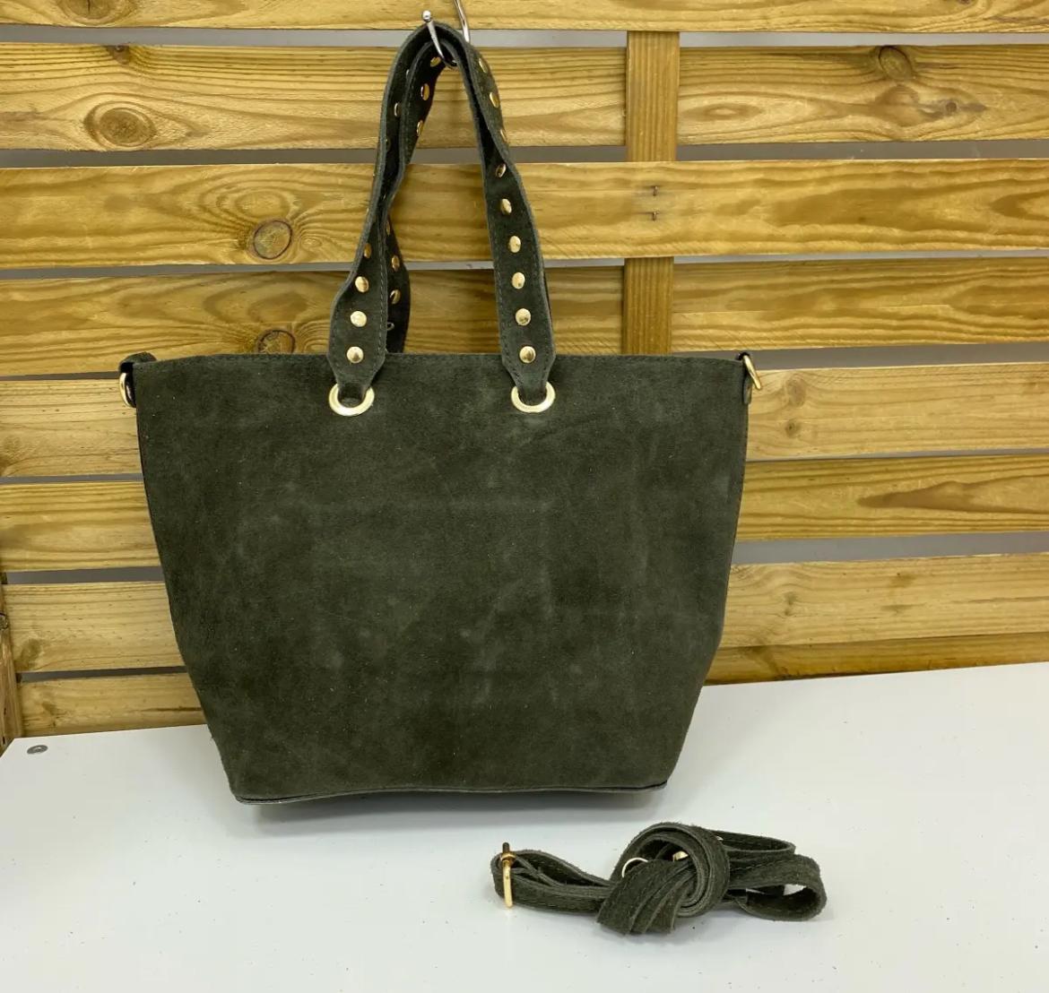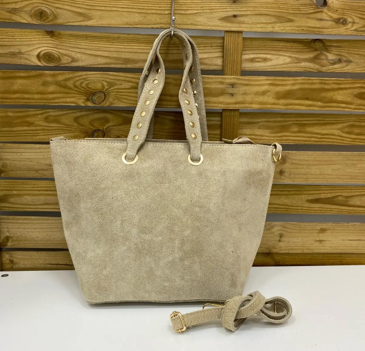 Bolso tot piel De Ante Con Tachuelas En El Asa, Con Asa Larga Ajustable.