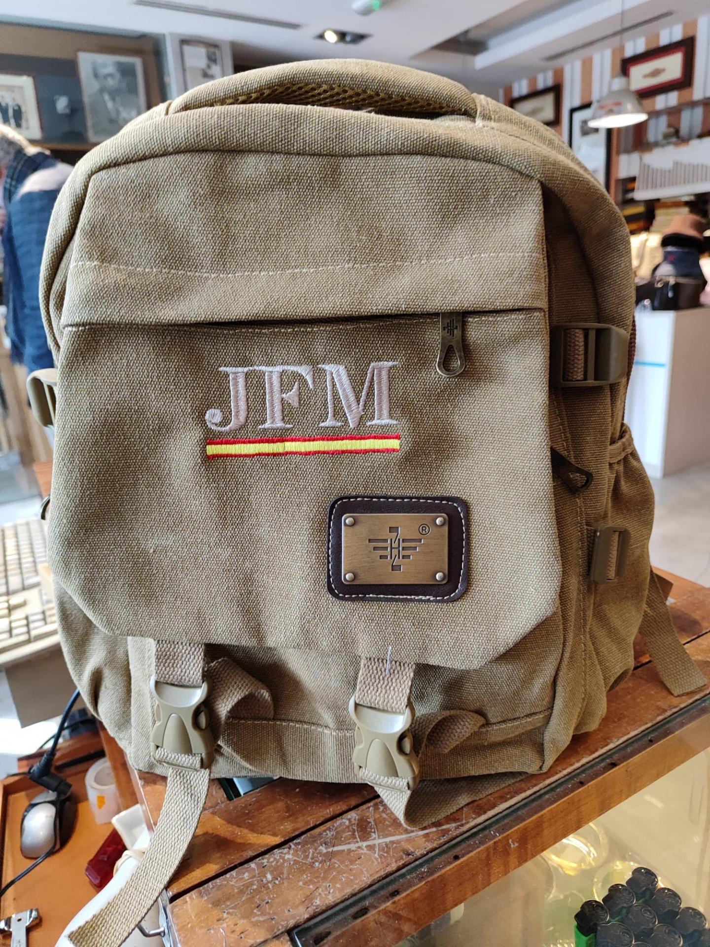 Mochila de loneta bordada con bandera de España e iniciales