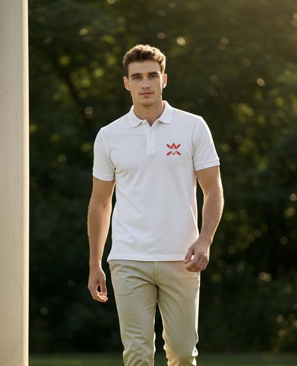 Polo bordado con morrión y aspas, viste con orgullo y personalidad