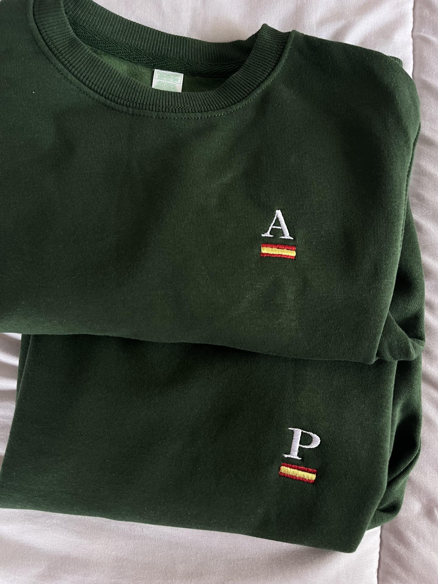 Sudadera de niños disponible en todos los colores con inicial y bandera de España bordada