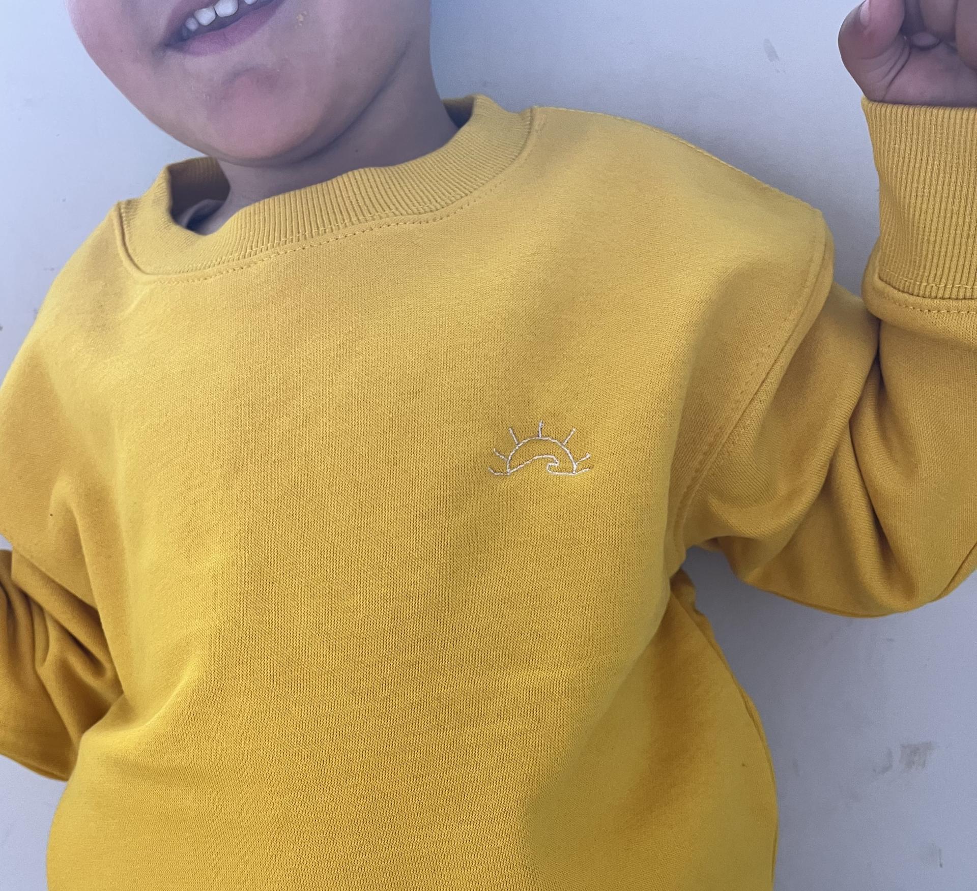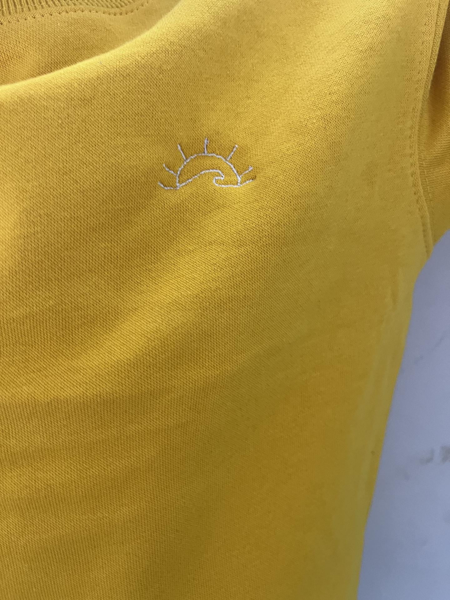 Sudadera amarillo bordado líneas de sol y mar